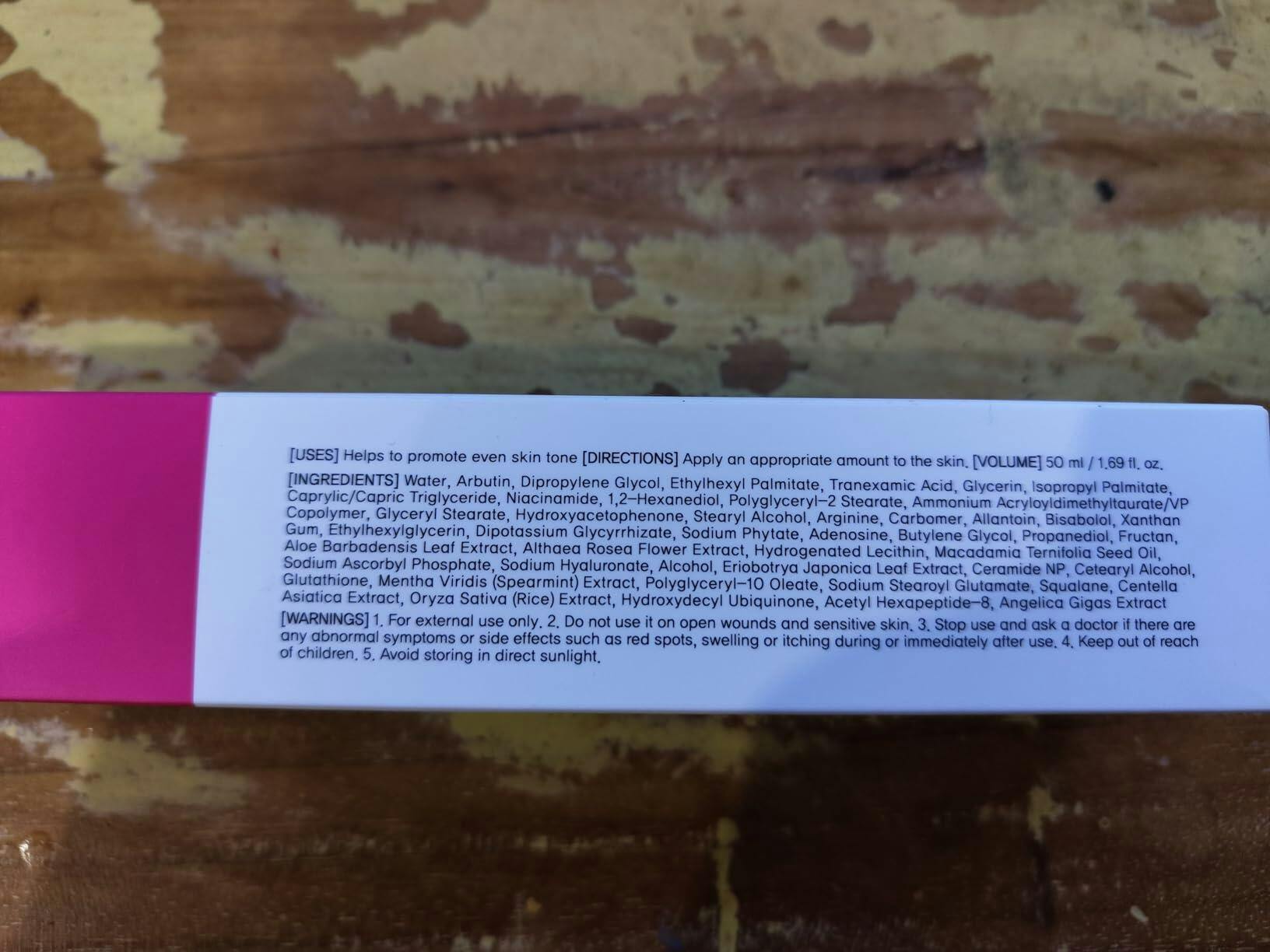 Uses effective levels of Arbutin & Tranexamic Acid |